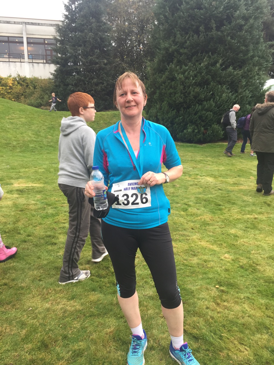 I was at the race on my own, but or maybe because of this,  I met lots of interesting fellow runners – from the guy on the bus who was doing this for a second year and before in two weeks time the Snowdonia marathon , to the lady at the start who – new to running -had run 3 halfs this year and raised over £ 600 for the race charity partner Badaguish / Speyside Trust, to the Speyside trail runners looking towards the Paris marathon. And not forgetting Andy – who throughout the race I spotted had a steady pace and who I ran the last mile or so with discussing our respective favourite runs and the vagaries of Scottish weather.